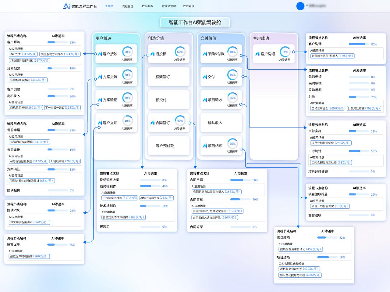 ? 將業(yè)務流程以作戰(zhàn)地圖的形式進行可視化呈現,清晰展示流程的各個環(huán)節(jié)、節(jié)點之間的關系以及當前流程所處階段